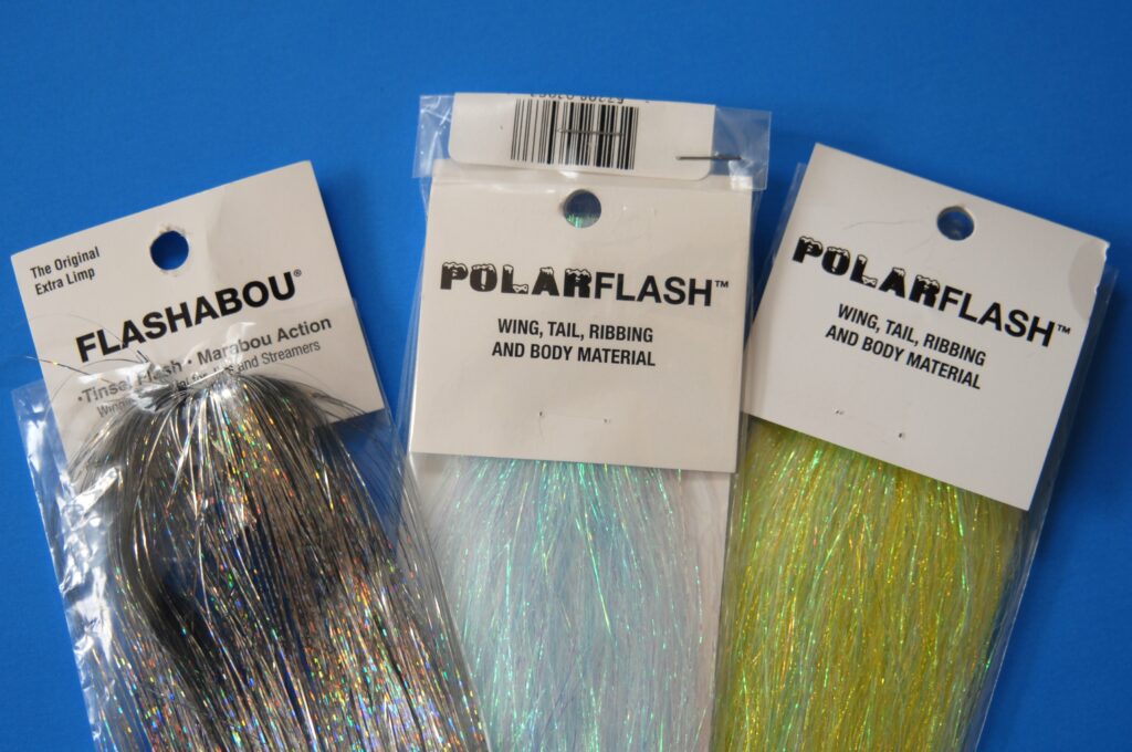 FLASH: Generous use of Flashabou within the tail and collar structure, rainbow or silver with pearl mixed