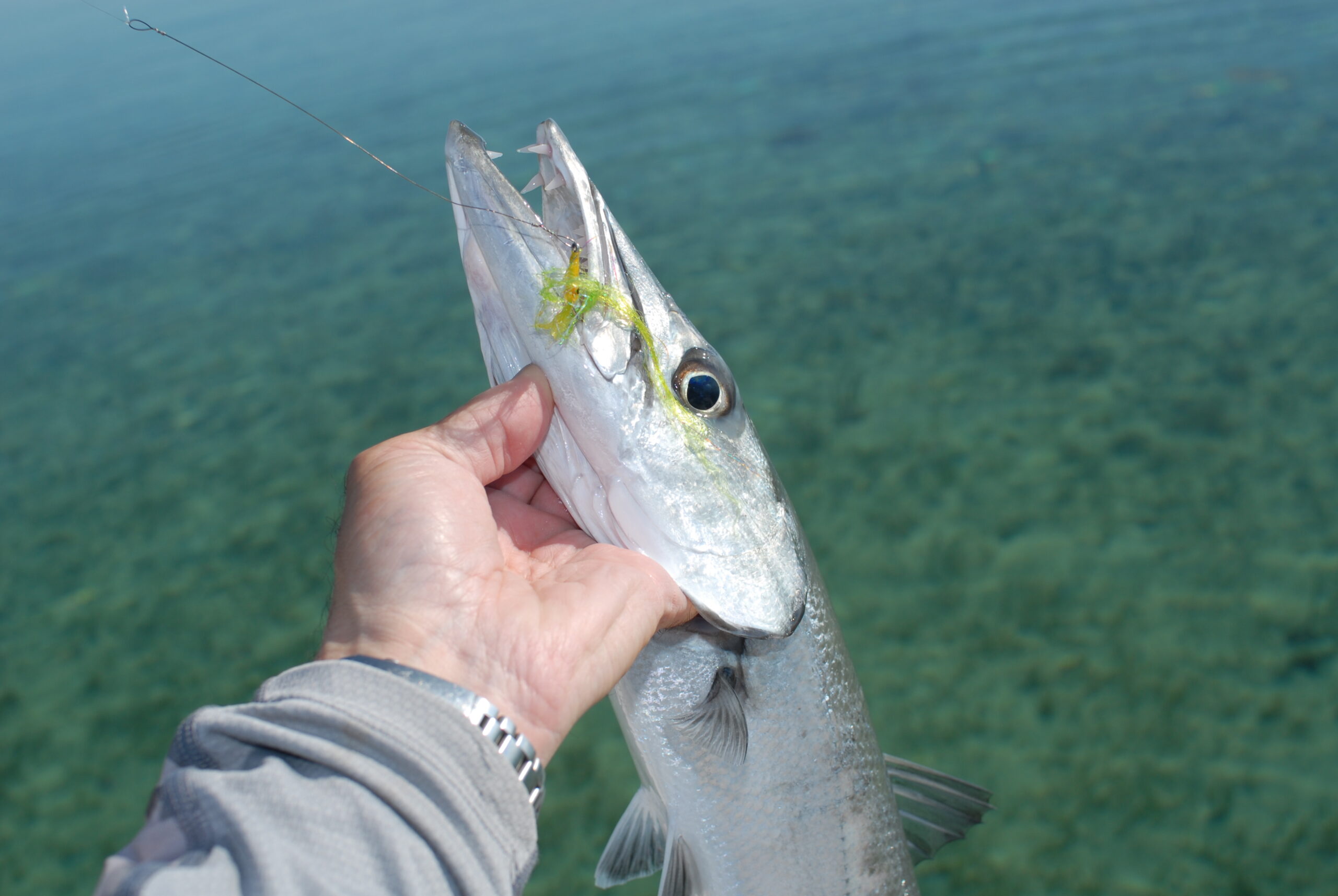 Rather small hooks (size 1 or 1/0) further enhance the fly’s deceptive capability. Over the years, I find that the wide gap Gamakatsu SC-15 is the ideal hook for hard-jawed fish, such as barracuda and many tuna species. It penetrates easily, usually stays put, and is relatively lightweight for its strength making it a great choice for fooling laser-visioned, discerning fish in bright, clear conditions.